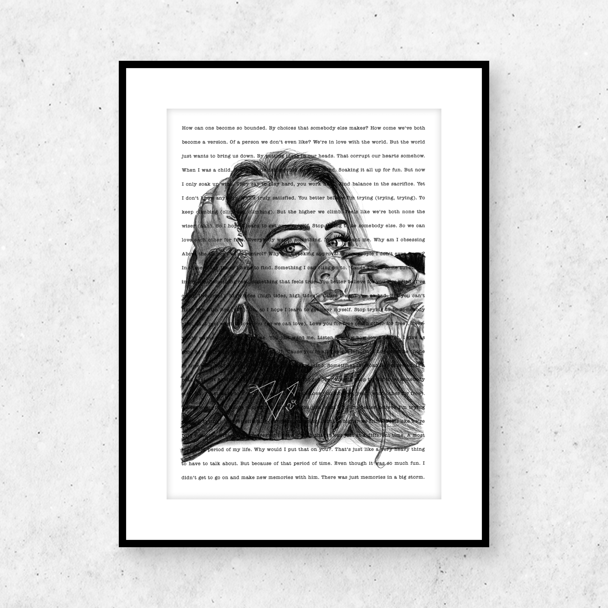 My drawing of Adele over 'I Drink Wine'.