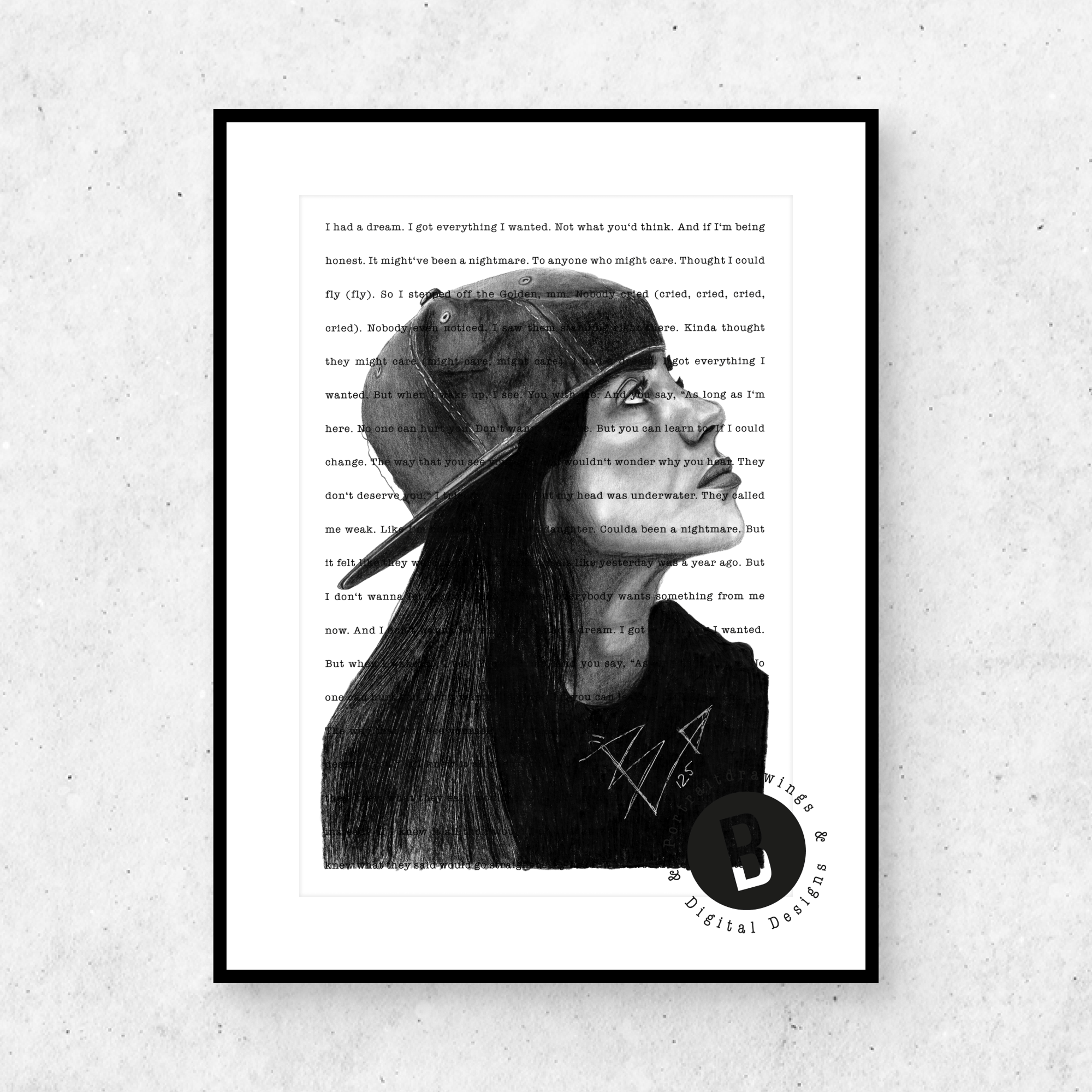 My drawing of Billie Eilish over 'Everything I wanted'.
