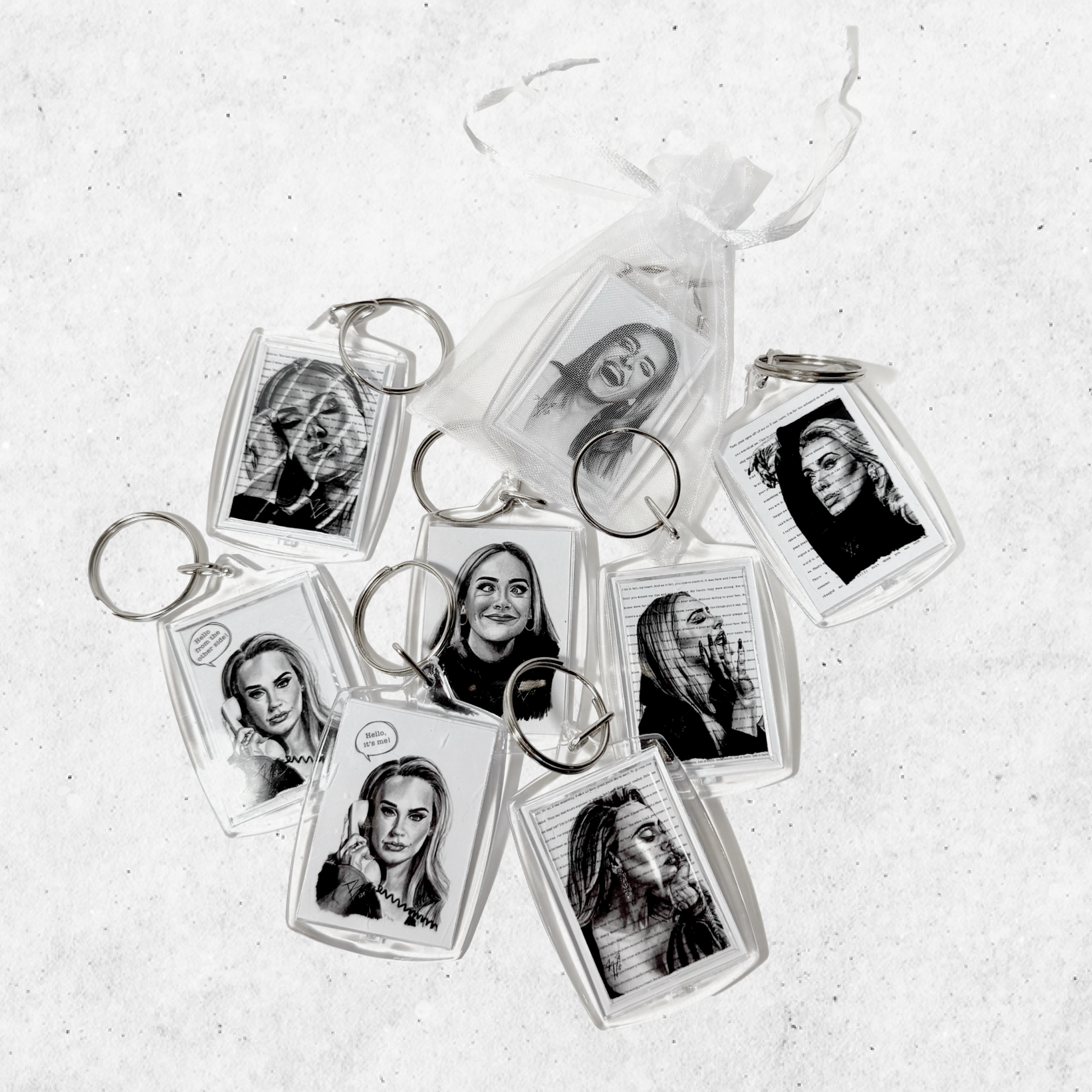 I am offering a Keychain with a printed Adele drawing on both sides.
